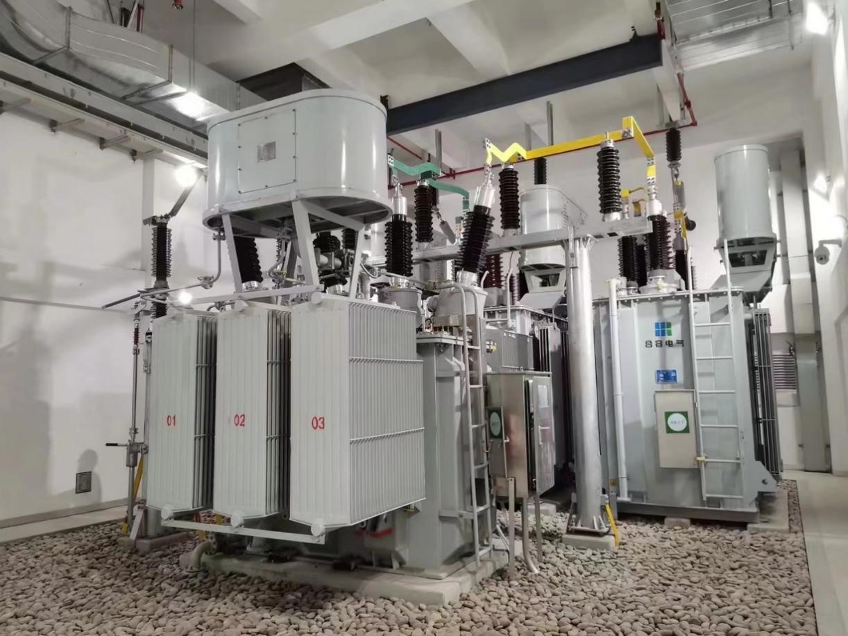 金山500kV新建變電站工程位于重慶市兩江新區(qū)黃茅坪,距離渝北地區(qū)直線距離約11km,站址場(chǎng)地為高陡斜坡,自然地面高差較大,標(biāo)高在356.43~378.32m之間,全站總占地面積1.33hm2(19.95畝)。主變壓器布置在配電裝置樓一層,500kV配電裝置布置在配電裝置樓三層,220kV配電裝置在配電裝置樓二層,66kV無(wú)功補(bǔ)償裝置在-8.4m地下布置。鑒于此地區(qū)特殊的地質(zhì)構(gòu)造、環(huán)境條件、且地處城市中心,金山500kV新建變電站工程采用全戶內(nèi)結(jié)構(gòu)。為適應(yīng)該工程需求,我公司開發(fā)了適應(yīng)戶內(nèi)使用的TBB66-60000/20000-AQN型集合式并聯(lián)電容器裝置,該裝置電抗器配套油抗,滿足了戶內(nèi)使用要求,是戶內(nèi)領(lǐng)域電壓等級(jí)和單臺(tái)容量先進(jìn)的集合式產(chǎn)品,推動(dòng)了中國(guó)集合式電容器事業(yè)的發(fā)展。該工程于2020年投運(yùn)至今,運(yùn)行良好。